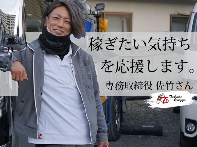 竹田工業さんでは現在、新たな仲間を募集中です。『稼ぎたい』『プライベートも大切にしたい』という方、ぜひ一度、チェックしてみてください。