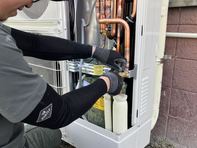 色々あるんですけど、エアコンって配管が結構ポイントだったりするんです。そんな配管処理が一発で決まると「よっしゃー」という感じ、ありますね(笑)