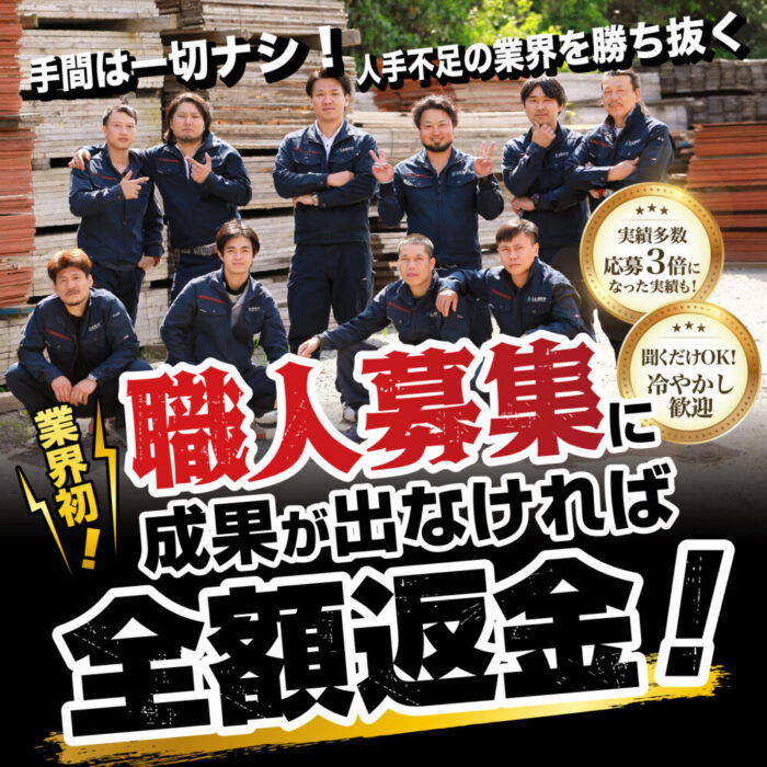 職人スタイルなら様々な施策を行いながら御社の人手不足、職人不足の解消の